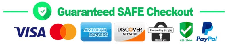 The Checkout Process is Guaranteed to be 100% Safe and Secure with Visa, Mastercard, AMex, Discover, Apple Pay or PayPal.