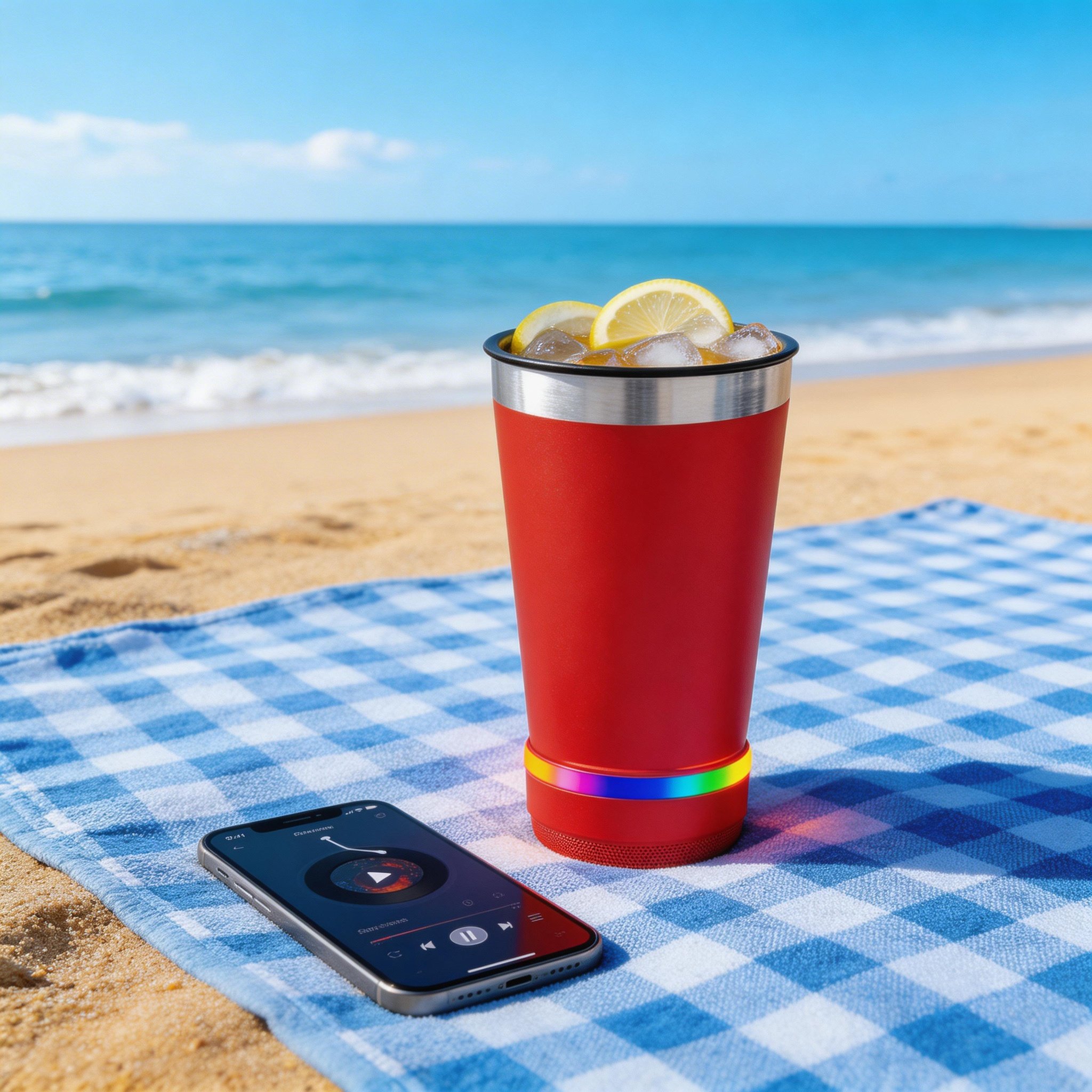Enjoy your favorite drink while your music plays — no extra speaker needed. 🎶